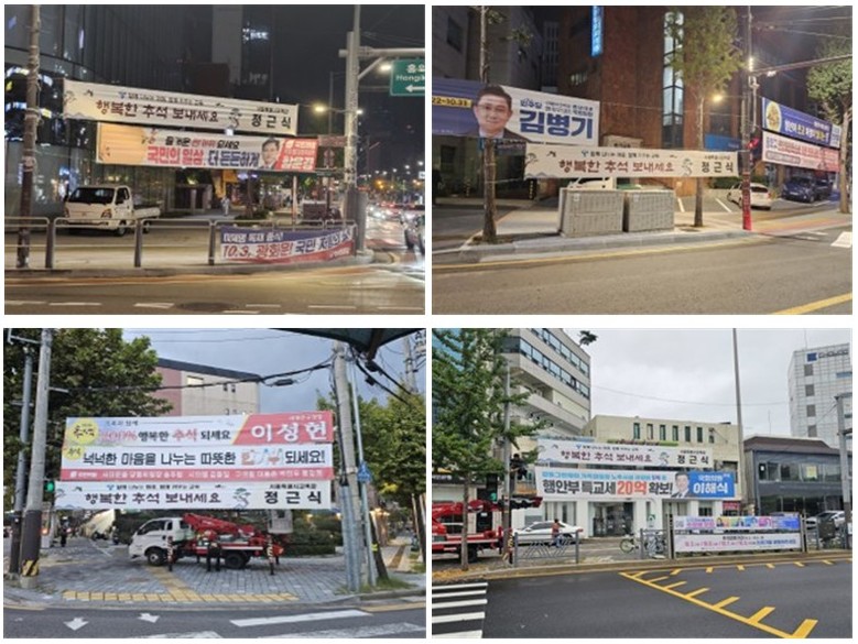 서울시교육청이 제출한 ‘최근 5년간 교육감 명절 현수막 게첩 현황’에 따르면 올해 추석 교육청은 ‘함께 나누는 마음, 함께 키우는 교육, 행복한 추석 보내세요. 서울특별시교육감 정근식’이라는 현수막을 서울시 내 34개소에 게첩한 것으로 나타났다. 예산은 약 8백만 원 상당 소요됐으며, 예산 명목은 본예산에 편성됐던 ‘소모품 및 행사용품 구입비’로 지출됐다.