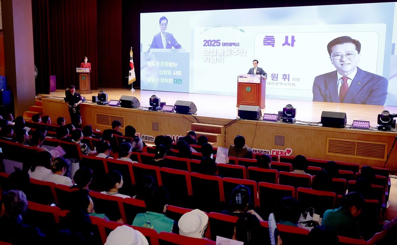 [대전 세계타임즈=이채봉 기자] 대전시의회 조원휘 의장은 2일 대전시청에서 개최된 2025년 양성평등주간 기념식에 참석해 배려와 존중으로 성별의 차별이 없고 모두가 행복한 대전을 위한 정책적 관심과 지원을 약속했다.