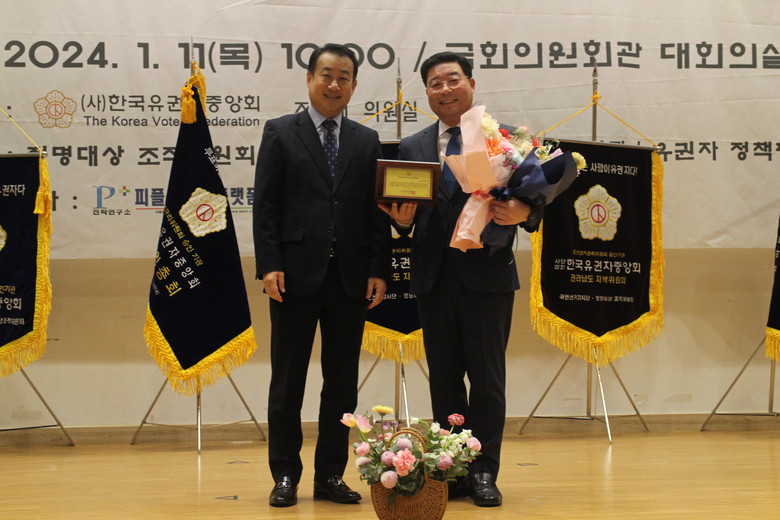 [전남 세계타임즈=우덕현 기자] 전라남도의회 기획행정위원회(위원장 신민호)가 1월 11일 한국유권자중앙회가 주관하는 '정명(正ㆍ明)의정대상' 에서 ‘우수 상임위원회’로 선정됐다.