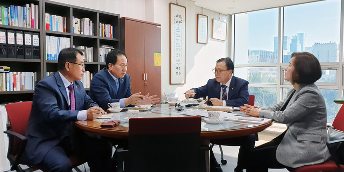 [울산=세계타임즈 이호근 기자] 황세영 울산시의회 의장은 30일 오전, 울산시의회 안수일 의원, 서울시 입법정책과장과 함께 국회를 방문하여 이채익 국회의원을 만나 지방자치법 전부개정안을 조속히 심의해 줄 것을 협조 요청했다.