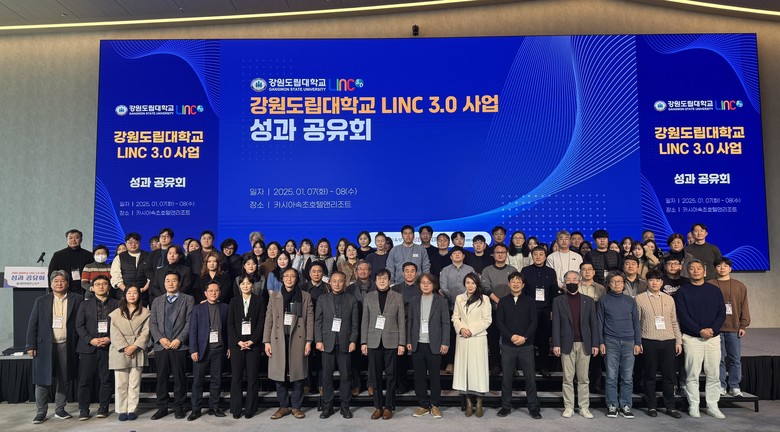 [강원도 세계타임즈=김민석 기자] 강원도립대학교(총장 김광래) LINC 3.0 사업단은 1월 7일부터 8일까지 속초 카시아호텔에서 ′LINC 3.0 사업 성과 공유회′를 성공적으로 개최했다. 이번 행사에는 강원도립대학교 총장, LINC 3.0 사업단 단장, 교직원, 산업체, 지자체 관계자 등 약 120여 명이 참석했다.