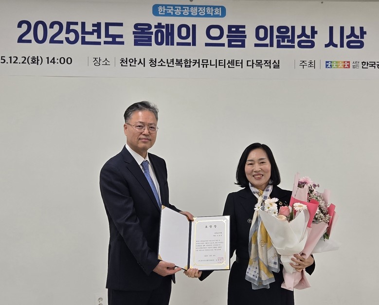 신순옥 의원은 “이번 상은 그동안의 정책이 올바른 방향이라는 점을 확인시켜 준 의미 있는 상”이라며 “앞으로도 도민 한 분 한 분의 삶이 더 안전하고 따뜻해질 수 있도록 세심한 정책을 만들겠다”고 수상 소감을 밝혔다.