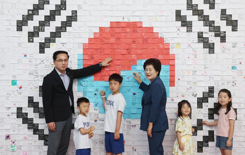 특히, 유치원생부터 어르신까지 남녀노소 다양한 연령층이 참여해 의미를 더했으며, 각자의 마음을 담은 1,000여 장의 메시지가 모여 하나의 거대한 태극기로 완성됐다.