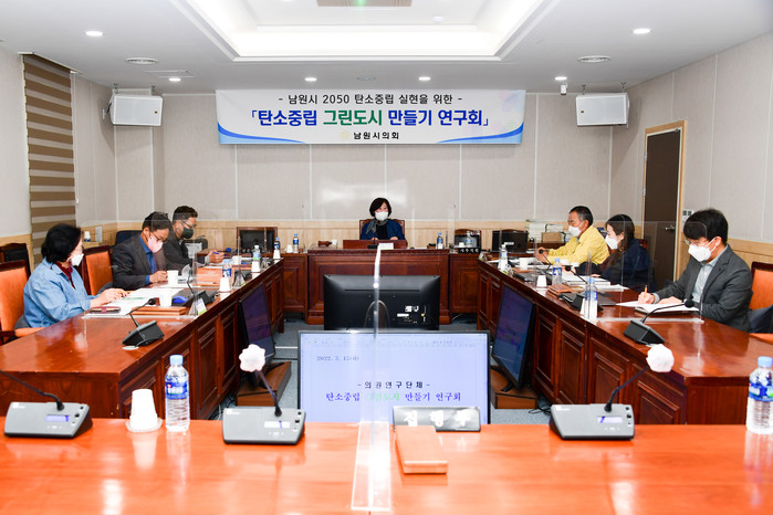[남원=세계타임즈 김동현 기자] 남원시의회 ‘탄소중립 그린도시 만들기 연구회’(대표의원 한명숙)는 15일 시의회 3층 자치행정위원회 회의실에서 연구회 운영일정 및 연구방안 논의를 위한 첫 간담회를 개최했다.