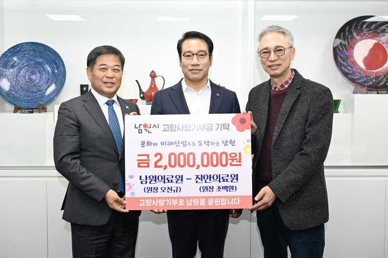 최경식 남원시장은 “남원의료원과 진안의료원에서 보내주신 고향 사랑과 따뜻한 기부에 깊이 감사드린다. 이번 나눔이 지역 의료 발전의 밑거름이 될 수 있도록 시정에서도 함께 노력하겠다”라며 감사 인사를 전했다.