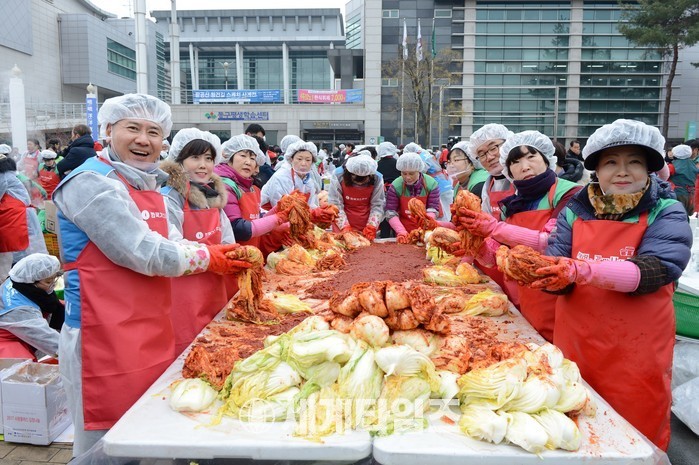행사에는 가스공사 김점수 기획본부장을 비롯한 임직원 40여명과 동구청, 민간사회안전망위원회, 새마을부녀회, 새마을협의회, K-2 국군 장병 등 각계 각층에서 500여명이 참여해 배추 3천200포기 분량의 김장 김치를 담갔다.