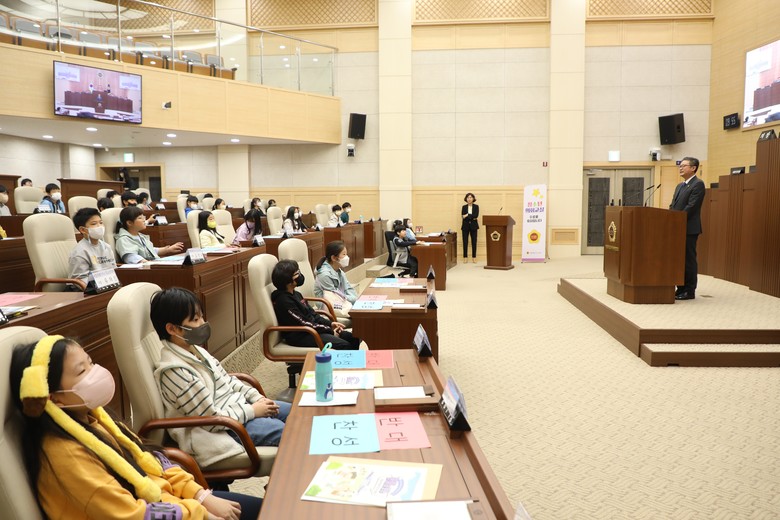 이번 ‘견학프로그램’은 학교의 신청에 따라 미르초등학교 4학년 전체 학생이 참여하였다. 학생들은 홍보관 방문 및 의회 홍보영상을 통해 의회의 기능과 4개 상임위원회 구성 및 역할 등을 배우는 시간을 가졌다.
