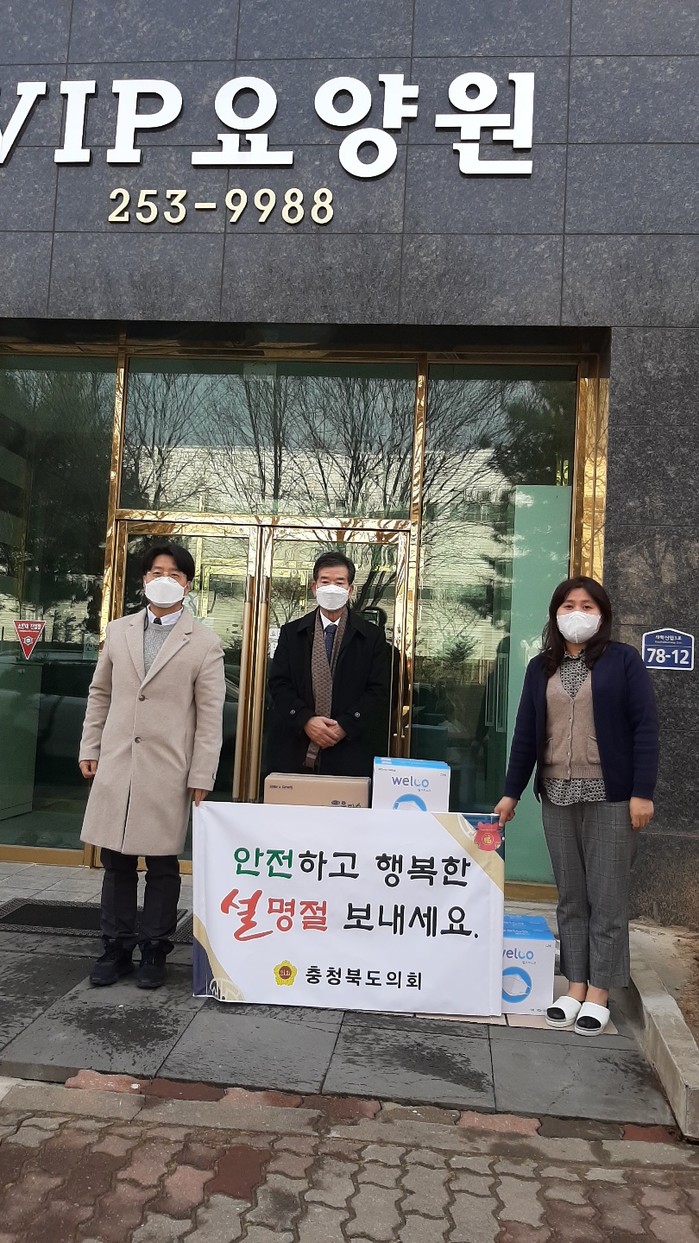 [충북=세계타임즈 이현진 기자] 충청북도의회 이의영 부의장은 민족 대명절 설을 앞두고 26일 청주시 오창읍 VIP요양원과 에버그린사회복지센터를 방문해 위문품을 전달하고 시설 관계자들을 격려했다.