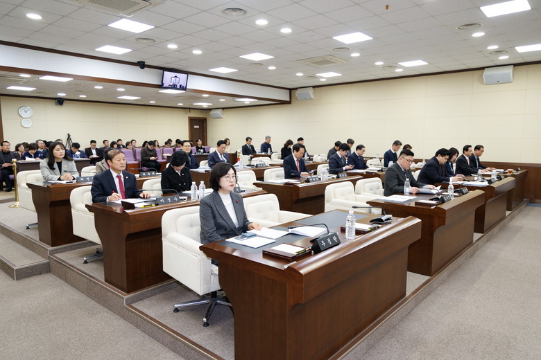 정선희 의장은 개회사를 통해 "이번 임시회는 조례안 등 안건심사를 비롯해 구정 현안과 관련된 주요 시설의 현장 방문이 예정되어 있다"며 "주민들이 안심하고 이용할 수 있는 환경이 조성되는지 살펴보고, 확인된 사항들이 실질적인 정책 개선으로 이어지도록 적극적인 관심을 당부드린다"고 말했다. 또한 오는 4월 실시 예정인 2025회계연도 결산검사와 관련해 "구민의 소중한 세금이 본래 목적에 맞게 효율적으로 집행되었는지 면밀히 살펴봐 달라"고 강조했다. 이어서 최근 수도권 생활폐기물 직매립 금지 시행에 대해서 "선제적인 대응을 통해 당장의 폐기물 처리에 큰 차질이 발생하지 않도록 노력해 준 관계 공무원 여러분께 감사드린다"고 밝힌 뒤 "단기적 처리 방식에만 의존하는 데에는 한계가 있는 만큼, 보다 중장기적 관점의 지속 가능한 관리 방안을 적극 검토해 달라"고 촉구했다.