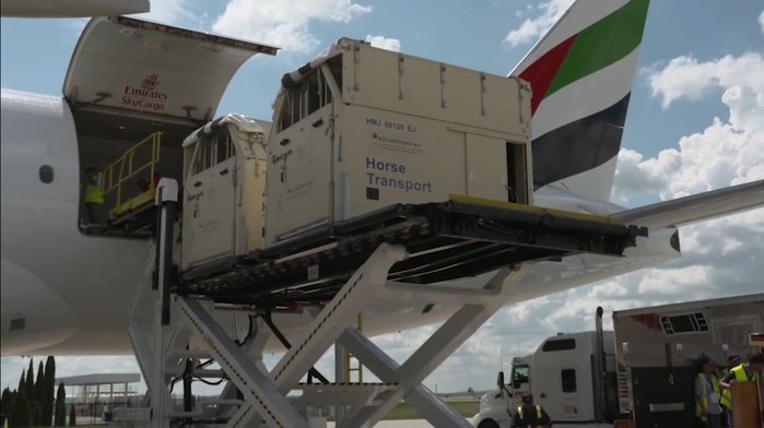 [세계타임즈 김인수 기자] 지난 8일 두바이에서 출발한 화물기가 인천공항에 착륙했다. 거칠게 내동댕이 처지는 위탁수화물과는 달리 신주단지 모시듯 조심스럽게 내려진 약 2평 크기의 컨테이너 스톨(stall, 마방)문이 열리고 나타난 건 놀랍게도 500kg에 육박하는 경주마 3마리였다.