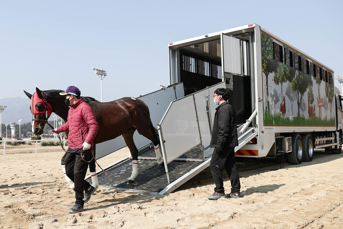지난 2월 27일 두바이 메이단 경마장에서 연이어 코리아가 울려 퍼졌다. 두바이월드컵 예선대회인 컬린 스테이크스 (Curlin Stakes)경주에 한국 경주마 3마리가 해외 원정 출전했기 때문이다. 작년 한국 경주마 ‘돌콩’이 두바이월드컵 결승전에 출전하는 쾌거를 이룬 후 또다시 올해 다시 도전장을 내민 것이다. 부산 경마장을 대표하는 경주마인 ‘투데이’, ‘그레이트킹’, ‘백문백답’은 이날 각 2위, 6위, 11위로 결승선을 통과했다. 올해는 아쉽게도 결승전 티켓을 쥐지 못했지만 이들에겐 한 장의 남은 티켓이 있다. 바로 경주마 항공 티켓이다.