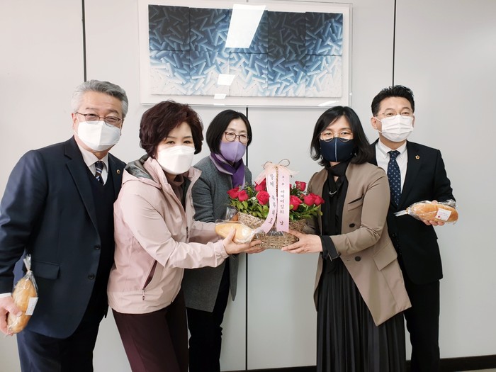 정승희 대표는 “세계여성의날을 기념하는 축하인사 영상을 사전제작해 보내주신 충북도의원님(이숙애, 송미애, 허창원, 이상욱, 장선배, 이의영, 오영탁)께 감사드리며 성평등 실현 사회를 만들기 위해 노력에 감사드리고자 빵과 장미꽃을 전달드린다.”고 하였다.