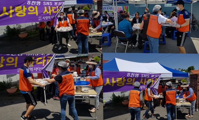 [세계타임즈 이장성 기자] 다양한 봉사를 꾸준히 실천하고 있는 SNS 대전시 봉사단체 사랑의 사다리 밴드(리더 이정제)는 22일 오전11시, 중구 보훈회관에서 국가유공자 어르신 100분께 삼계탕 봉사로 우리 사회의 따뜻한 사랑을 실천하였다.