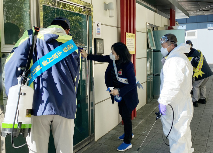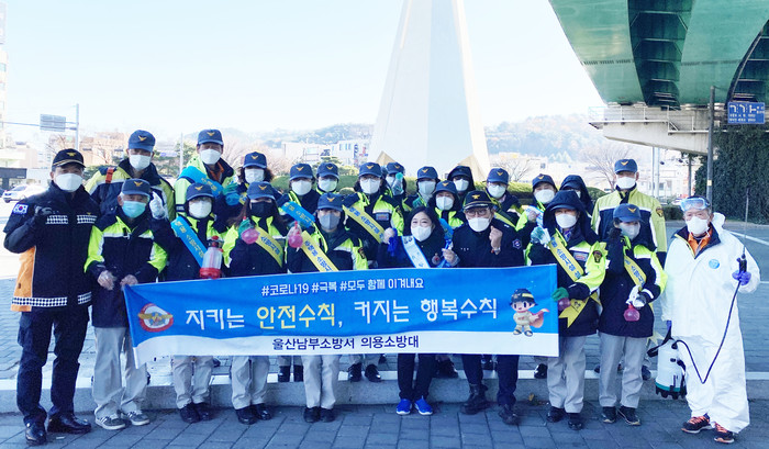 이날 이 의원과 무거119안전센터, 의용소방 대원 30여 명은 주민들이 많이 이용하는 남구 대학로 웰츠타워 버스정류장과 신복환승센터 등을 찾아 의자와 출입문 손잡이 등을 소독하고 사회적 거리두기 참여, 개인 위생수칙 준수, 올바른 마스크 착용법 등을 홍보했다.