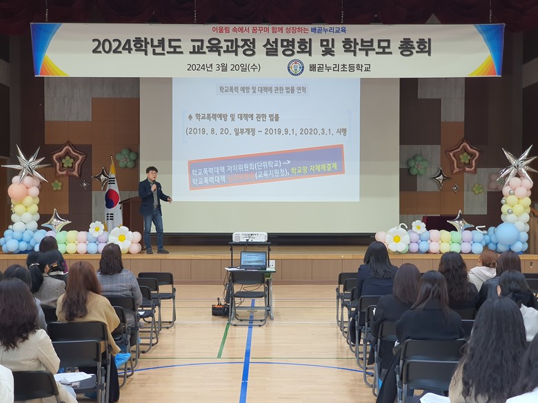 ◦ 3월 20일(수) 13시 30분 배곧누리초 교육과정 설명회 및 학부모 총회 개최
