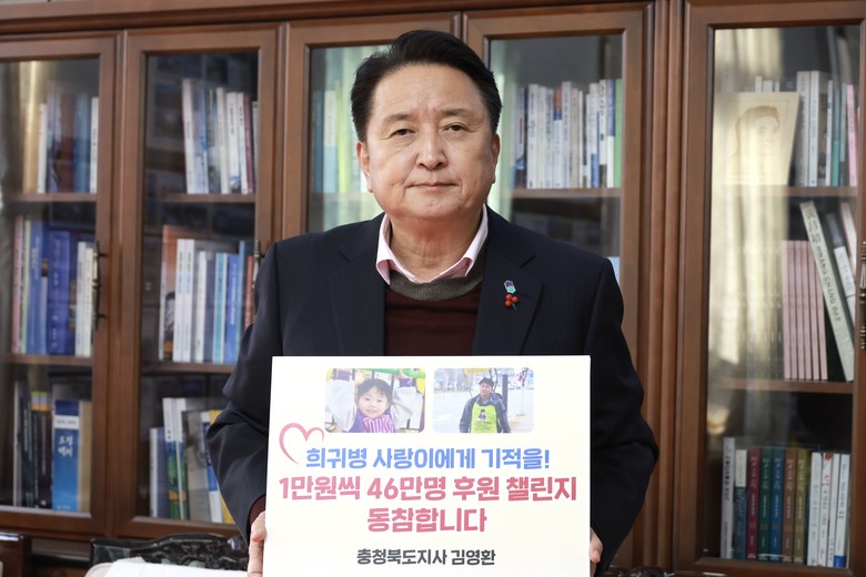 김영환 지사는 22일(금) ‘듀센 근이영양증(DMD)’이라는 근육 소실 희귀병을 앓고 있는 3살 ‘사랑이’를 위한 ‘1만 원씩 46만 명의 기적 챌린지’에 동참했다.
