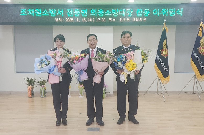 최민호 시장은 “의용소방대는 지역 주민의 안전을 책임지는 중요한 역할을 하고 있다”며 “그동안 지역사회 안전망 조성에 힘써주신 이임 대장에게 감사의 인사를 전하고 신임 대장은 전동면 의용소방대가 더욱 발전할 수 있도록 힘써 달라”고 말했다.