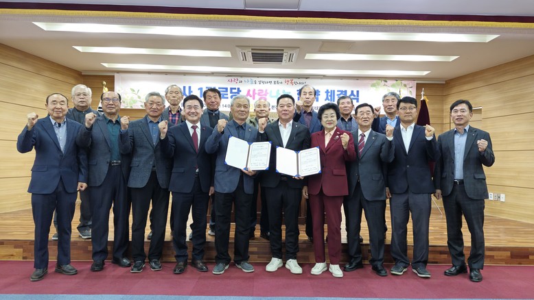 ‘1사1경로당’협약은 관내 기업이나 단체가 경로당과 1:1 결연을 맺어 후원과 봉사를 실천하는 사업이다. 이번 협약식에는 신둔농협(조합장 정하용)과 신둔면 분회 및 관내 29개소 경로당이 참여해 지역 어르신들의 복지 증진을 위해 상호 협력하기로 했다.