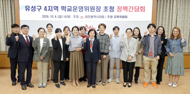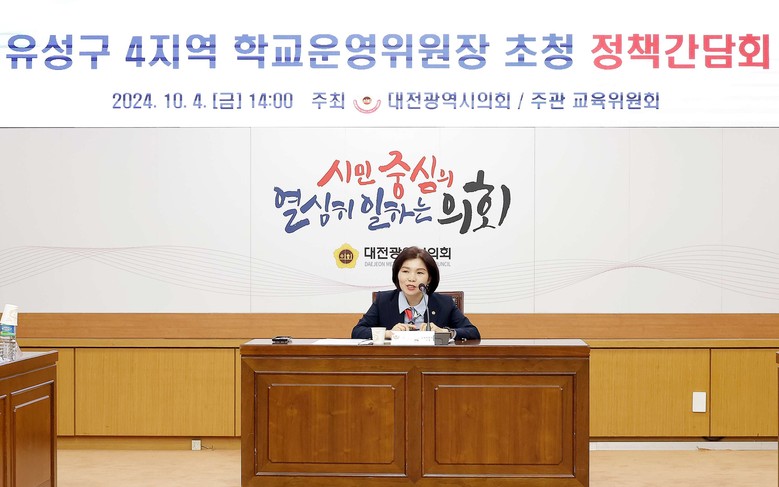 [대전 세계타임즈=이채봉 기자] 대전시의회는 4일 의회 소통실에서 이금선 의원(국민의힘, 유성구 4)주재로 ‘유성구 4지역 학교운영위원장 초청 정책간담회'를 개최했다.