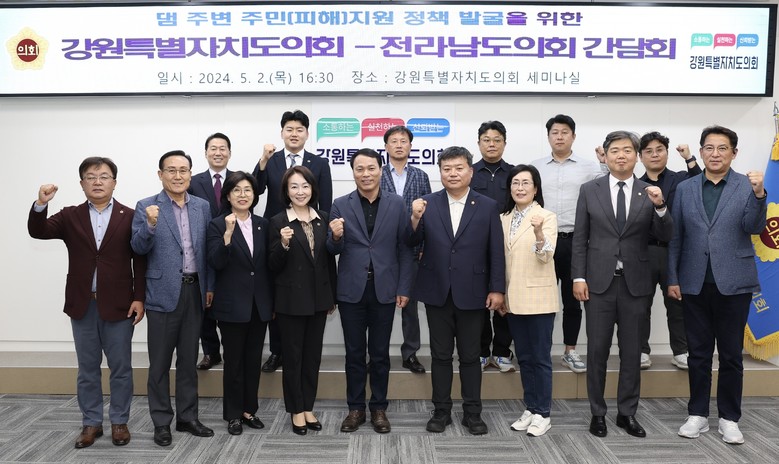 특위는 이날 소양강댐 주변지역 현장 시찰과 강원도의회 소양강댐 주변지역 피해지원 연구회와의 간담회를 갖고 전남과 강원도 간 댐 주변지역 주민에 대한 정부의 보상과 대책이 미흡함을 공감하면서, 규제 완화와 주민 지원에 관한 법률 제정 촉구 등 법적 제도화를 지속적으로 건의하고, 공동 협력.연대를 통해 정부가 댐 주변지역 환경개선과 주민들에게 실질적인 지원을 할 수 있도록 활동을 전개하는데 뜻을 모았다.