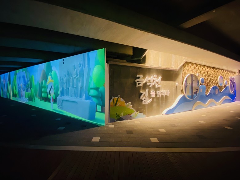아울러 수풀과 낙서, 쓰레기로 방치되어 있던 옥산교 하부 공간을 정비하고 생태하천의 의미를 체감할 수 있는 조형물과 경관조명을 설치하여 시민들이 잠시 머물며 휴식할 수 있는 생태 친화적 공간으로 새롭게 조성하였다.