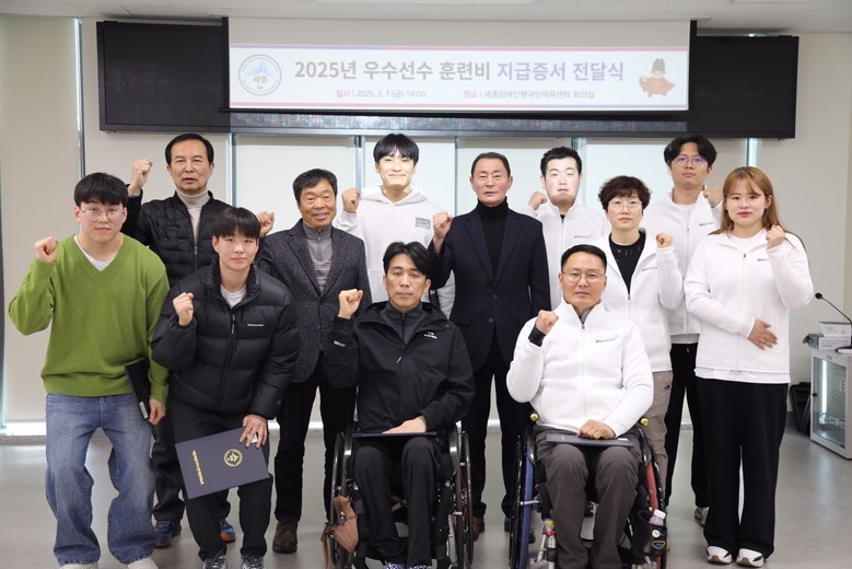[세종 세계타임즈=이채봉 기자] 세종시장애인체육회(회장 최민호)가 7일 지난해 각종 대회에서 우수한 성적을 거둔 선수 14명에게 우수선수 훈련비 지급 증서를 전달했다.