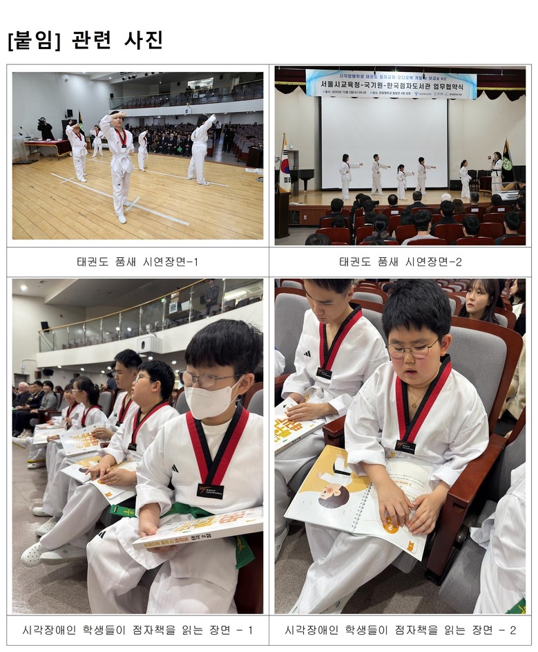 캠페인의 핵심 성과물인 점자 교본은 학생들이 손끝으로 태권도 동작을 읽고 이해할 수 있도록 특수 제작되었으며, 단순한 홍보를 넘어 특수교육 현장에서 활용 가능한 실질적 교육자료를 남겼다는 점에서 의미를 더했다.