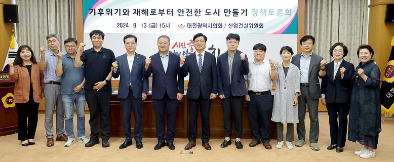 이어, 송대윤 제1부의장은 “오늘 토론회가 대전시가 기후위기에 적극적으로 대응하고, 안전한 도시 환경을 조성하기 위한 구체적인 정책 방향을 제시하는 중요한 기회였다”며, “대전시가 앞으로도 중앙정부와 협력하여 지속 가능한 도시 환경을 구축하고, 기후변화로 인한 재해로부터 시민들의 안전을 보호하는 정책을 추진할 수 있도록 대전시의회에서도 노력을 기울이겠다”고 언급했다.