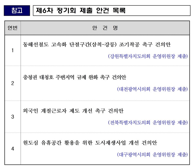 해당 안건은 대한민국시도의회의장협의회를 거쳐 국회와 관련 중앙부처로 전달될 예정이다.