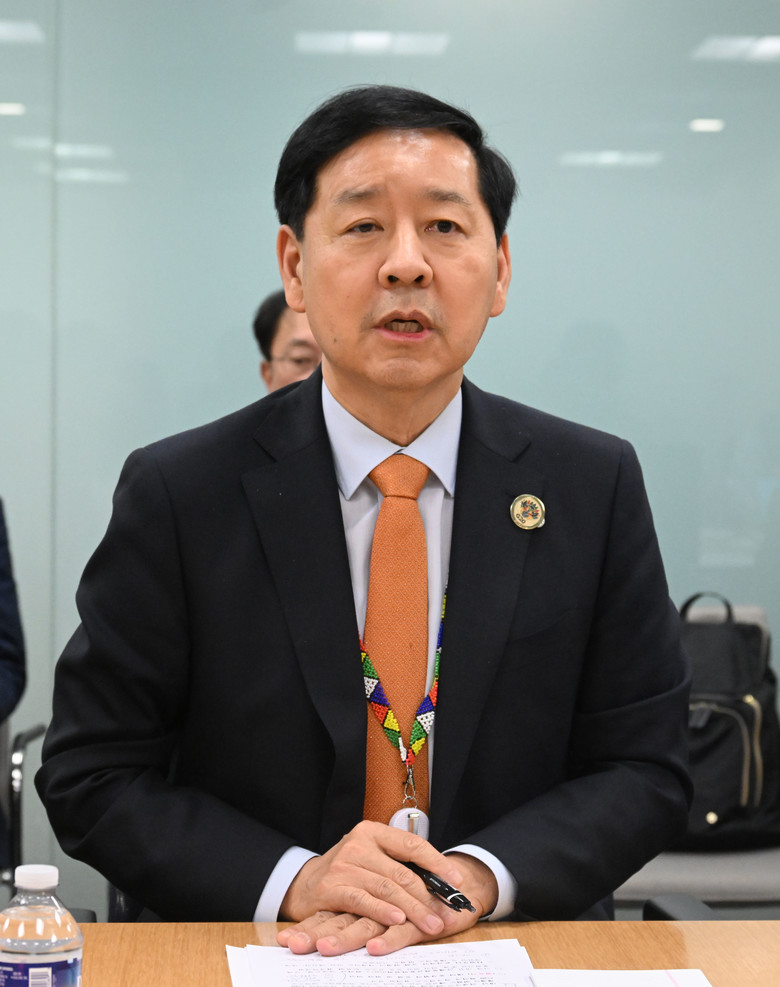 주요20개국(G20) 재무장관회의와 국제통화기금 및 세계은행(IMF/WB) 연차총회 참석차 미국 워싱턴DC를 방문 중인 구윤철 부총리 겸 기획재정부 장관이 16일(현지시간) 국제통화기금(IMF)에서 동행기자단과 간담회를 하고 있다. 2025.10.17 [기획재정부 제공]