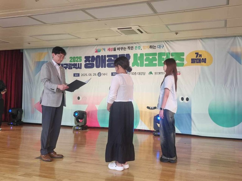 ▸ 연말까지 온·오프라인으로 다양한 장애인식개선 활동 전개 [세계타임즈=대구 한윤석 기자] 대구광역시는 장애인에 대한 올바른 인식을 확산하고 공감과 존중의 문화를 조성하기 위해 8월 29일(금), 동인청사 대강당에서 ‘제7기 장애공감 서포터즈 발대식’을 열고 공식 활동에 들어갔다.