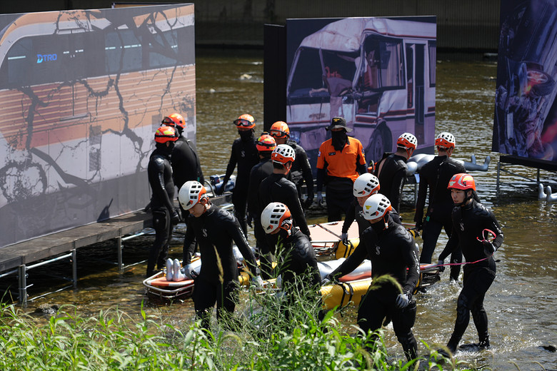 이번 훈련에는 소방·경찰·지자체 등 총 388명이 참여해 ▲지진 ▲도시철도 붕괴 ▲차량 추락 등 복합재난 상황을 가정, 실제 재난 현장을 방불케 하는 대규모 대응훈련을 펼쳤다.