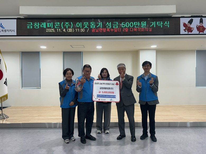 이선영 금남면장은 “매년 변함없이 이웃사랑을 실천하는 금창레미콘에 감사하다”며 “기탁된 성금은 꼭 도움이 필요한 곳에 사용하겠다”고 전했다.