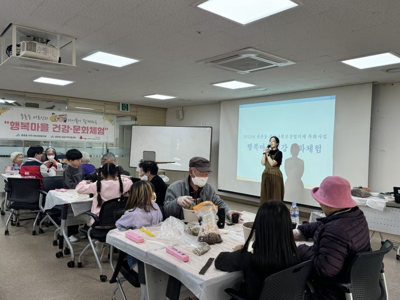 행복마을 건강·문화체험은 종촌동지역사회보장협의체가 종촌공립지역아동센터 아동들과 함께 65세 이상 어르신을 대상으로 건강 교육과 치매 예방체험 프로그램을 진행하는 사업이다.