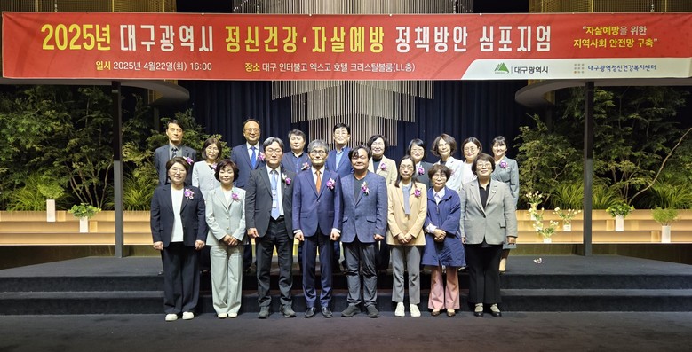 ‘자살예방을 위한 지역사회 안전망 구축’이라는 주제로 대구광역시가 주최하고 대구광역정신건강복지센터가 주관한 심포지엄은 자살예방과 정신건강증진을 위한 정책적 대응 방안을 모색하기 위해 마련되었으며, 전문가들이 참여하여 심도 있게 논의하였다.