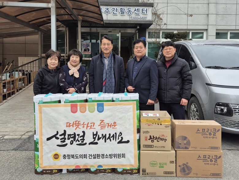 [충북 세계타임즈=이현진 기자] 충북도의회 건설환경소방위원회(위원장 이태훈, 괴산)는 설 명절을 맞아 16일 충북지적발달장애인복지협회 제천시지부(지부장 김종희)를 방문해 위문품을 전달하고 이웃사랑을 실천했다.