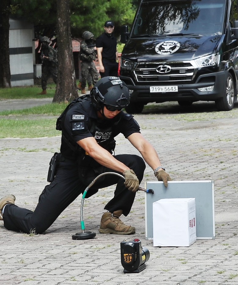 이번 훈련은 2025년 을지연습의 일환으로, 정부청사역 2번 출구와 지하 편의점에서 폭발물 의심 물체가 발견되어 관.군.경이 역을 방호하는 상황을 가정해 진행됐다.