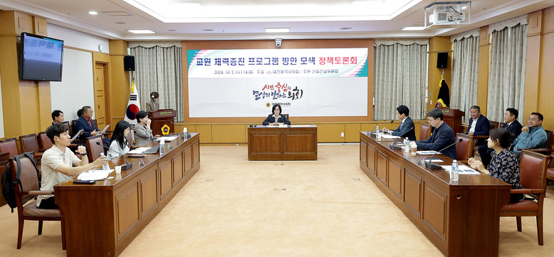 [대전 세계타임즈=이채봉 기자] 대전시의회는 2일 시의회 소통실에서 박주화 의원(국민의힘, 중구 1)주재로 ‘교원 체력증진 프로그램 방안 모색 정책토론회'를 개최했다.
