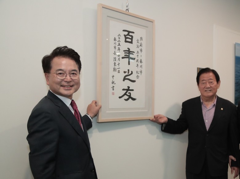 육동한 춘천시장은 “‘백년지우’ 작품 전시는 양 도시가 신뢰와 존중을 바탕으로 한 50년의 우정이 100년까지 영원히 지속될 것임을 상징한다”고 말했다.