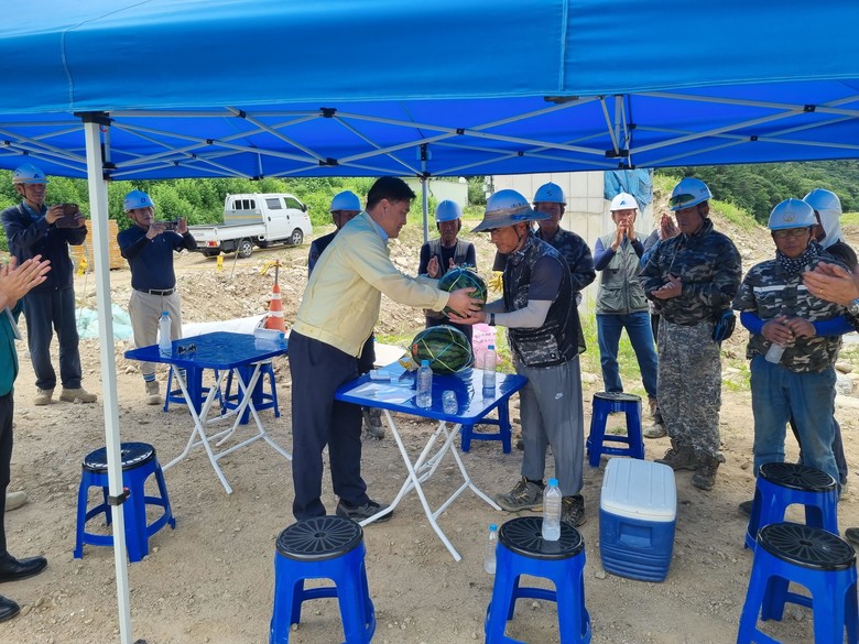 현장점검을 마친 후에는 무더위 속에서 작업 중인 근로자들을 격려하며, 수박 등 수분 보충에 도움이 되는 여름철 과일도 제공했다.