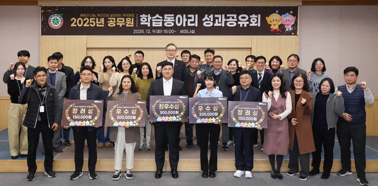 [대전 세계타임즈=이채봉 기자] 대전시는 9일 시청 세미나실에서 「2025년 공무원 학습동아리 성과공유회」를 개최하고, 올 한 해 동안 적극행정과 시정혁신을 목표로 공직자들이 자율적으로 수행한 정책연구 중 우수성과를 거둔 5개 학습동아리를 최종 선정해 시상했다.