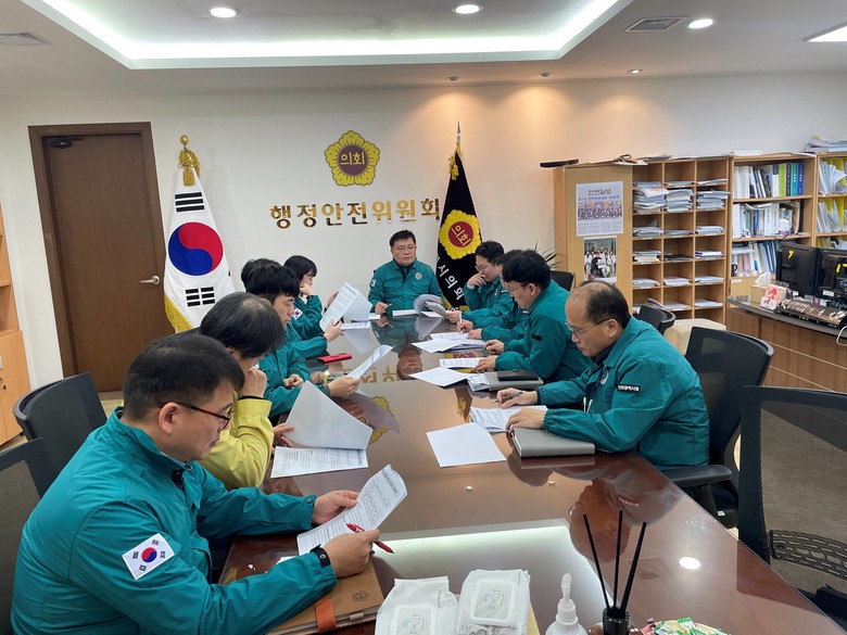 인천시의회 행정안전위원회는 27일 위위원장실에서 신동섭 위원장을 비롯해 이단비·김대영 부위원장, 김용희·김재동·석정규·신성영·신영희 의원, 인천시 관계자 등이 참석한 가운데 인천시 지역재난안전대책본부 운영 상황을 점검과 향후 대응 방안을 논의하고 관계 직원을 격려했다.
