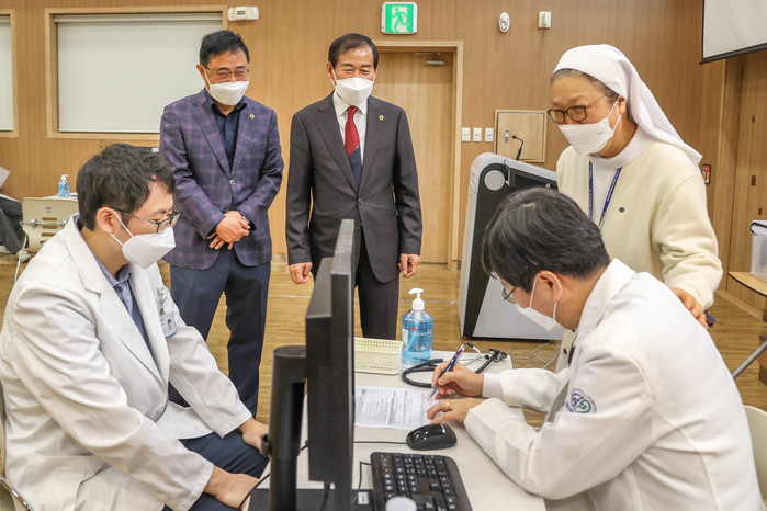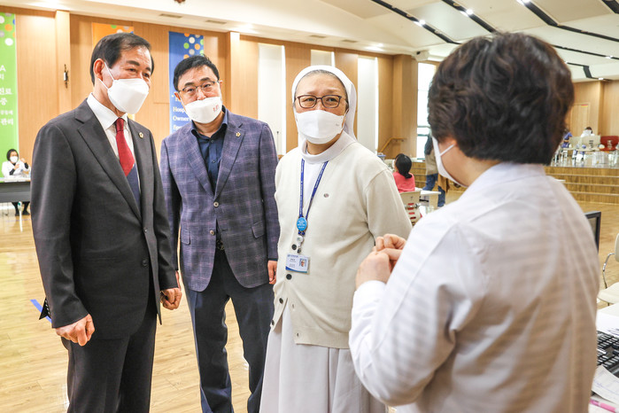 [대구=세계타임즈 한성국 기자] 대구광역시의회(의장 장상수)가 3월 8일(월) 오전 코로나19 백신 접종이 진행되고 있는 동구 신암동 소재 ‘파티마 병원’을 찾아 의료진과 접종자를 격려하고 현장의 어려움을 살펴보았다.