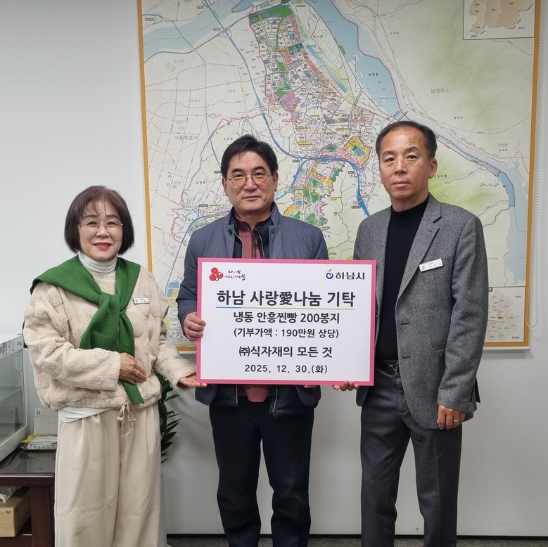[하남시 세계타임즈=송민수 기자] 하남시는 지난 30일, ㈜식자재의모든것(대표 박경애)이 찐빵 200박스(190만원 상당)를 ‘하남 사랑愛나눔’성품으로 기탁하며, 지역사회 나눔 문화 조성에 기여했다고 밝혔다.
