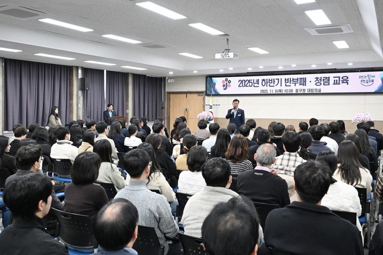 [중구 세계타임즈=이채봉 기자] 대전 중구(구청장 김제선)는 6일 구청 대회의실에서 신규 임용자, 승진자 등 직원 200여 명을 대상으로‘2025년 하반기 반부패·청렴교육’을 실시했다고 밝혔다.