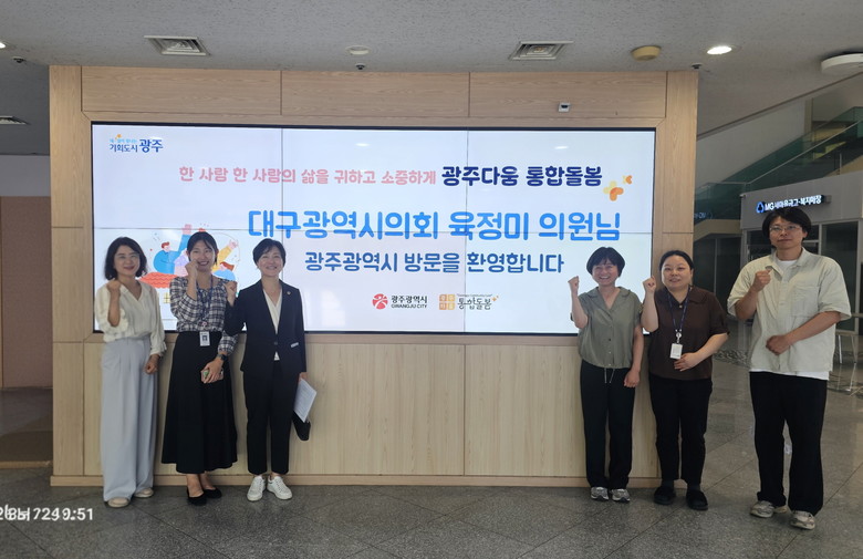[대구 세계타임즈=한윤석 기자] 대구시의회 육정미 의원(비례대표)는 7월 2일(수) ‘광주다움 통합돌봄’의 혁신 행정 사례를 벤치마킹하고자 광주광역시청을 방문했다.