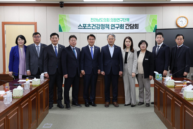 [전남 세계타임즈=우덕현 기자] 전라남도의회 의원 연구단체인 ‘스포츠건강정책 연구회(대표의원 박성재)’가 지난 3월 20일 경제관광문화위원회 회의실에서 간담회를 갖고 본격적인 활동에 들어갔다.