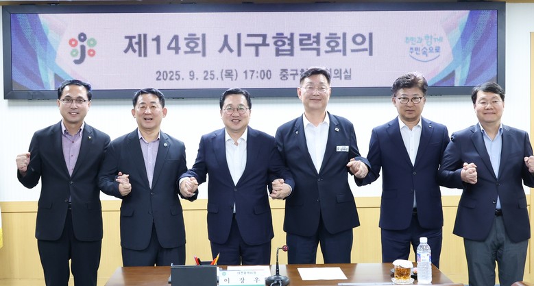 [대전 세계타임즈=이채봉 기자] 대전시는 9월 25일 중구청 중회의실에서 이장우 시장 주재로 제14회 시구협력회의를 열고, 시민 안전과 생활 불편 해소를 위한 8개 협력과제를 논의했다. 이번 회의에는 동구·중구·서구·유성구·대덕구 구청장 및 부구청장이 참석해 지역 현안을 공유하고 협력 방안을 모색했다.