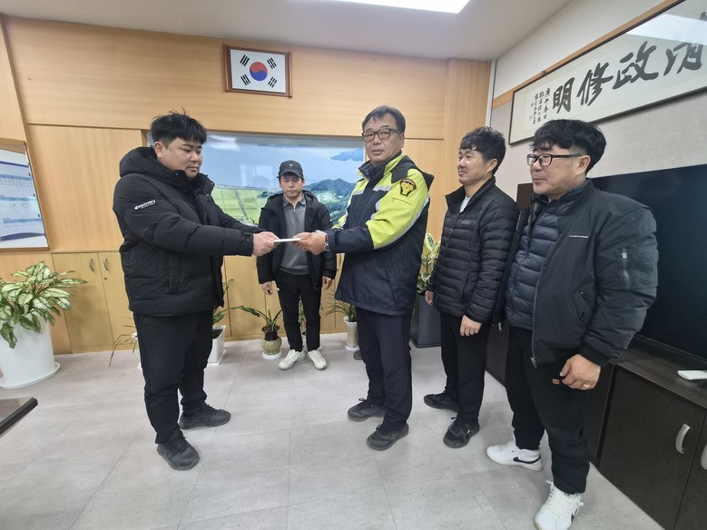 이번 성금은 양도면 인산리에서 발생한 낙뢰로 큰 재산 피해를 입은 주민을 위로하고, 하루빨리 일상을 회복할 수 있도록 돕기 위해 마련됐으며, 대원들은 예기치 못한 재난으로 어려움을 겪고 있는 이웃의 아픔에 공감하며 자발적으로 뜻을 모았다.