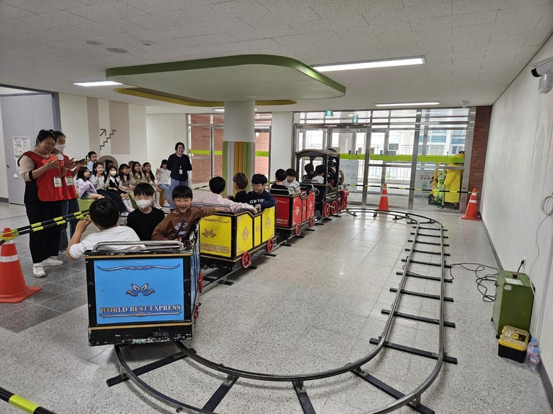이번 유・초 이음 어린이날 주간을 위하여 에어바운스, 바이킹 시소, 스윙그네, 농구와 축구장, 미니기차 등 다양한 놀이기구를 설치하여 학교에 미니 놀이동산을 만들었다. 이번 행사를 통하여 유치원과 초등학생들이 스트레스를 해소하고 즐겁게 놀이를 하며 친해질 수 있는 기회가 되었다.